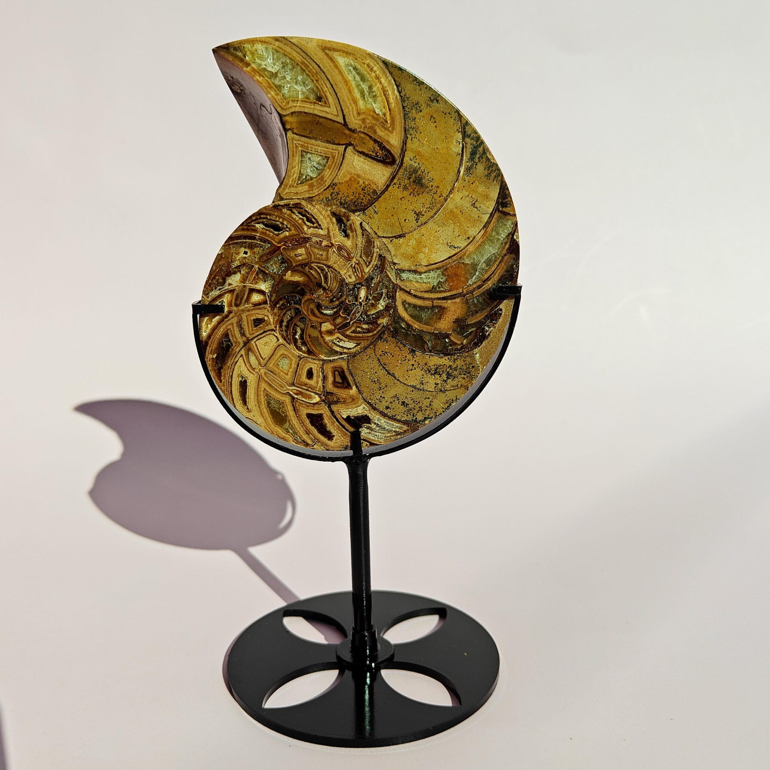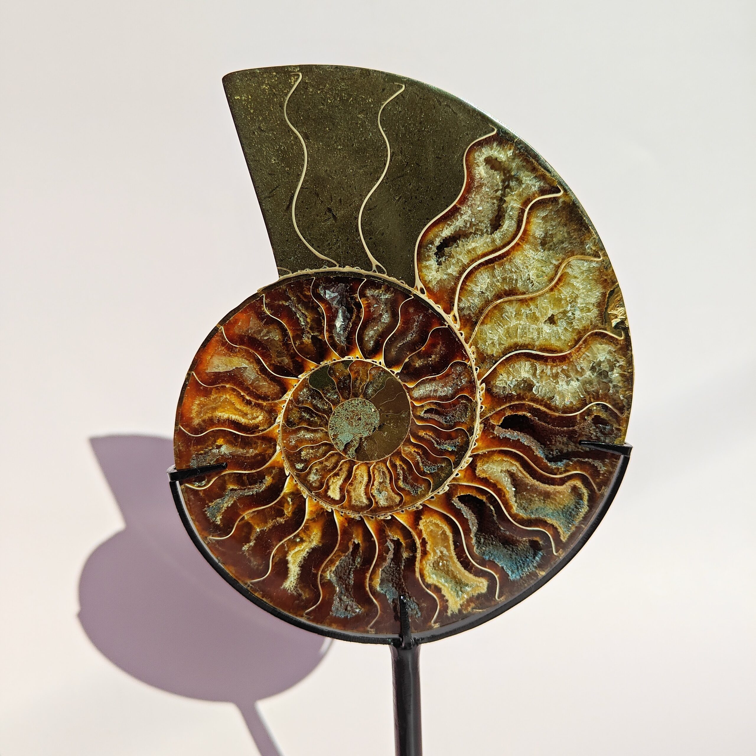 האמונייט הוא מאובן ייחודי ומרתק שמקורו ברכיכה ימית שהתקיימה לפני למעלה מ-400 מיליון שנה. הרכיכה, שהייתה חלק מקבוצת היצורים הקרויים אמוניטים, התאפיינה בצורתה הסלילית המושלמת. מאובנים אלה נשמרו בתנאים מיוחדים, ולעיתים מתגלים עם גוונים מרהיבים בשל מינרלים שחדרו אליהם במהלך השנים, כמו קלציט וארגוניט.