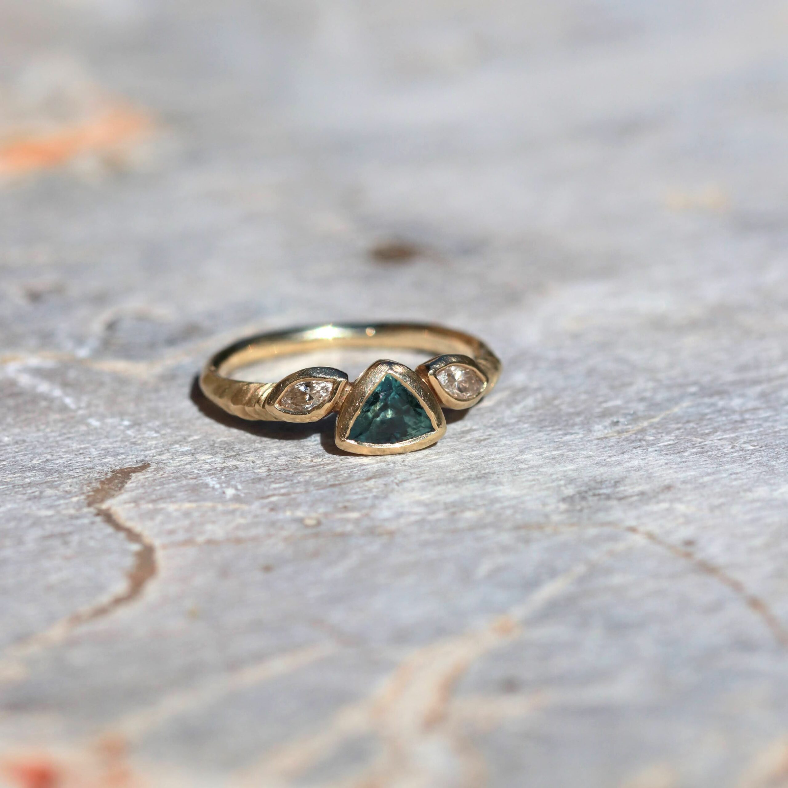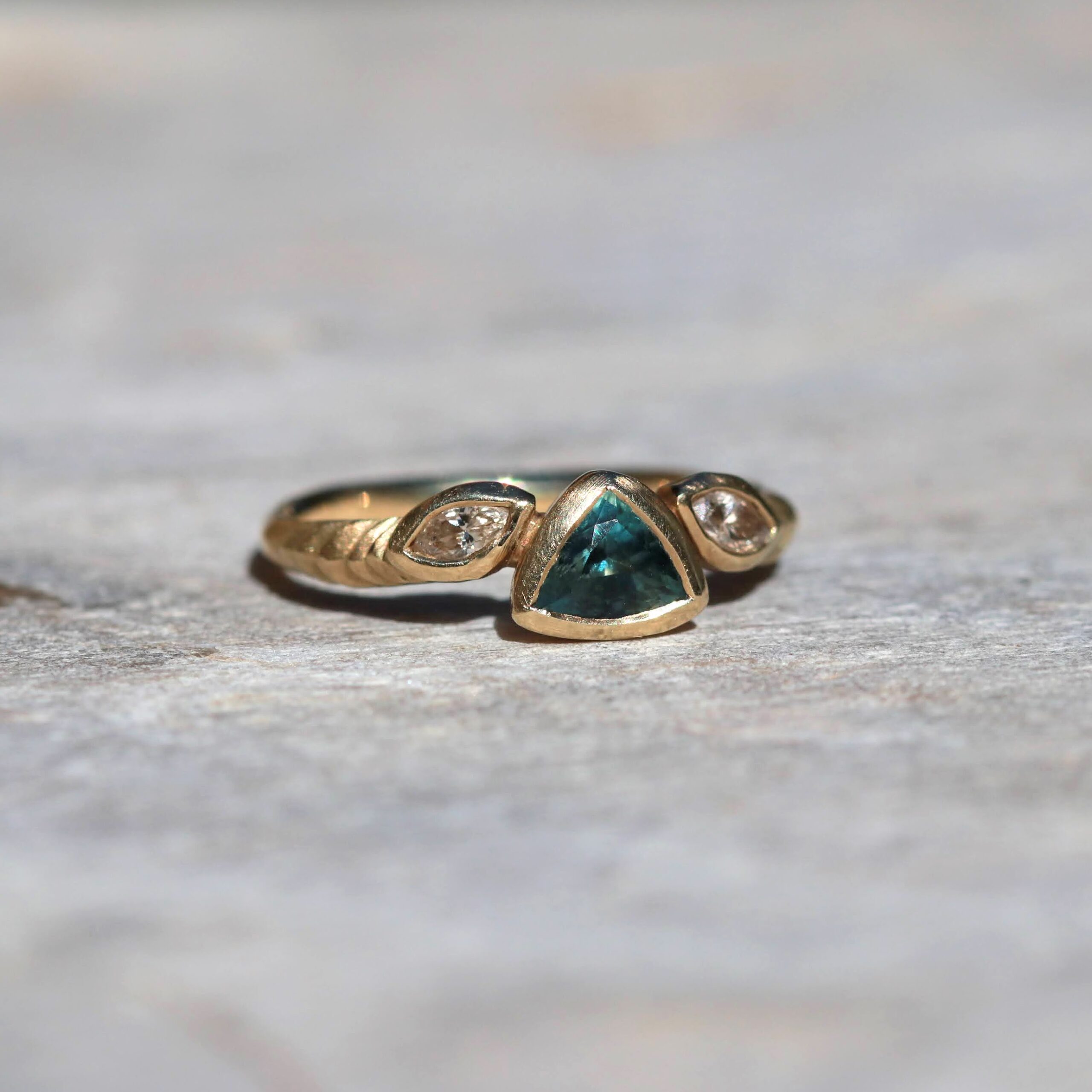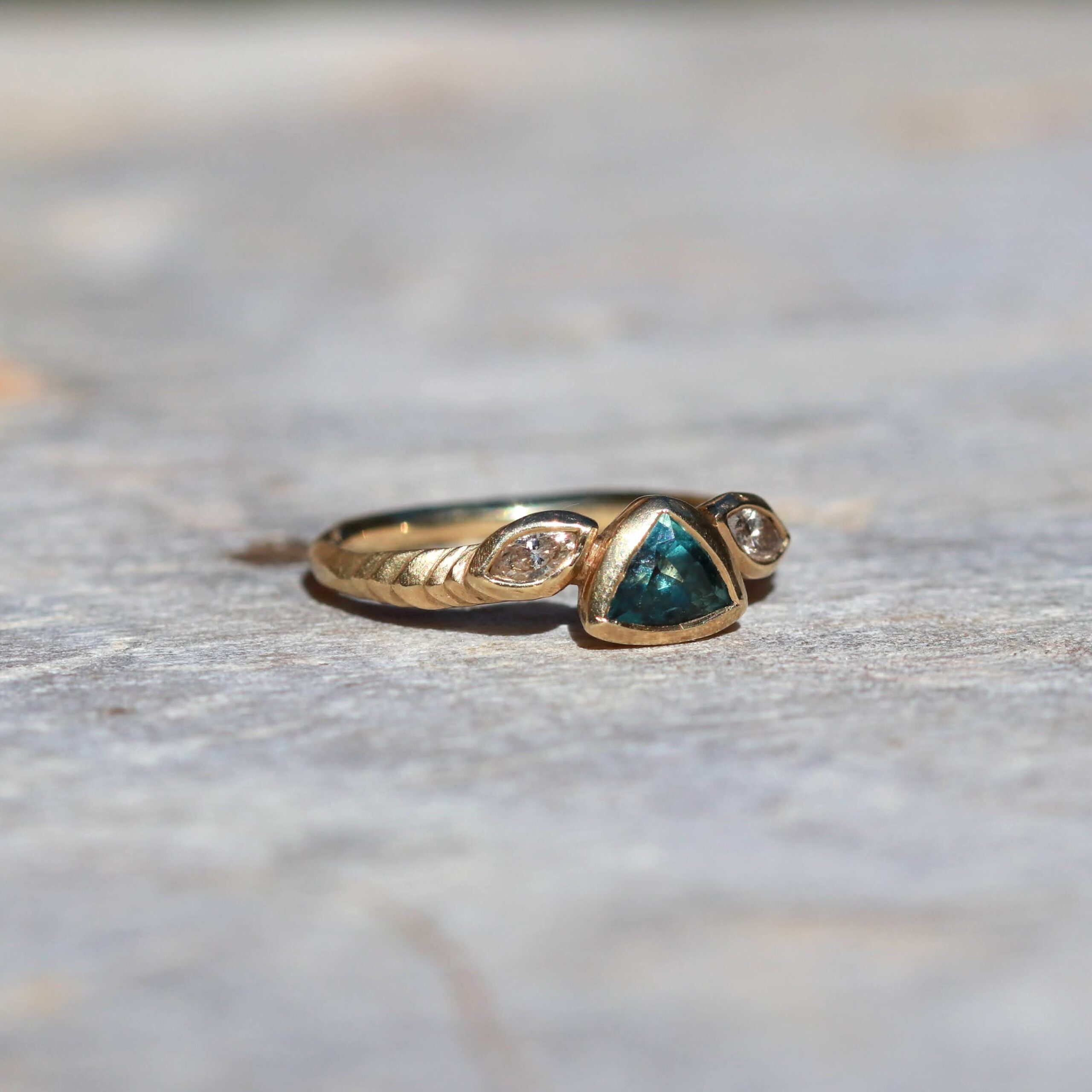 טבעת זהב I 14K ספיר מונטנה טבעית ויהלומי שמפניה