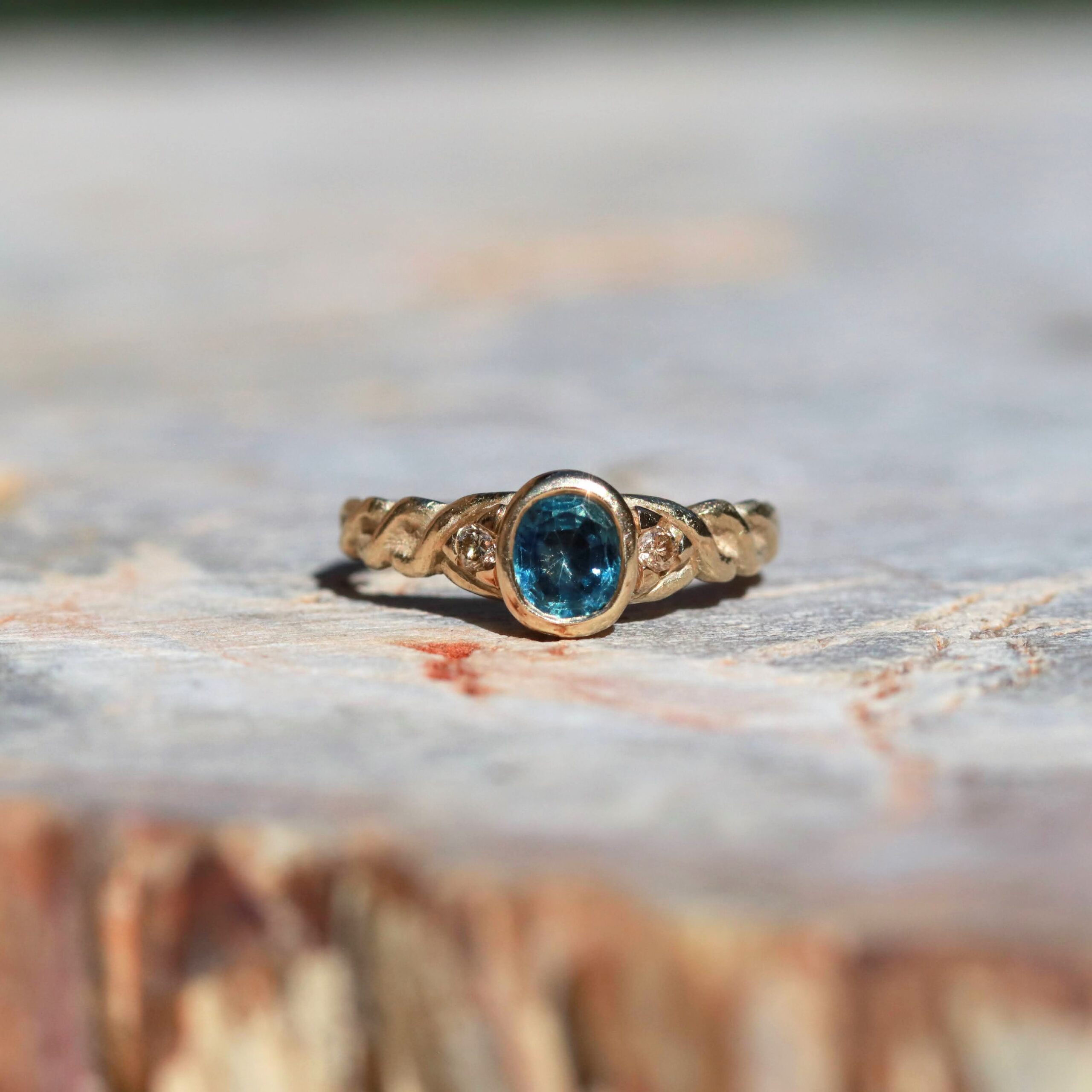 טבעת זהב I 14K ספיר טבעית ויהלומי שמפניה