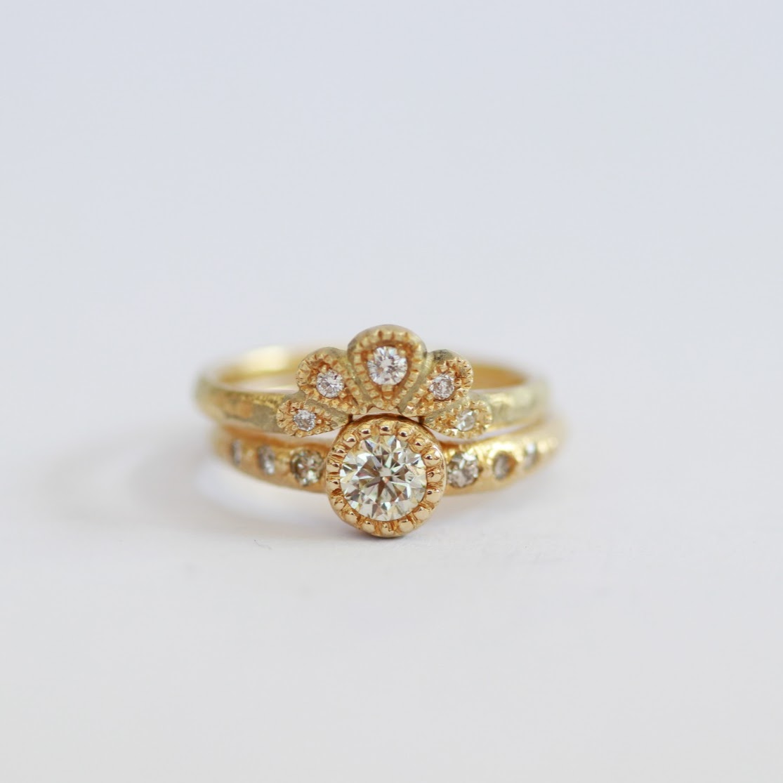 העיצוב הקמור יוצר צורת כתר עדינה, המתאימה לענידה כטבעת שנייה מעל טבעת נוספת או כטבעת עצמאית.