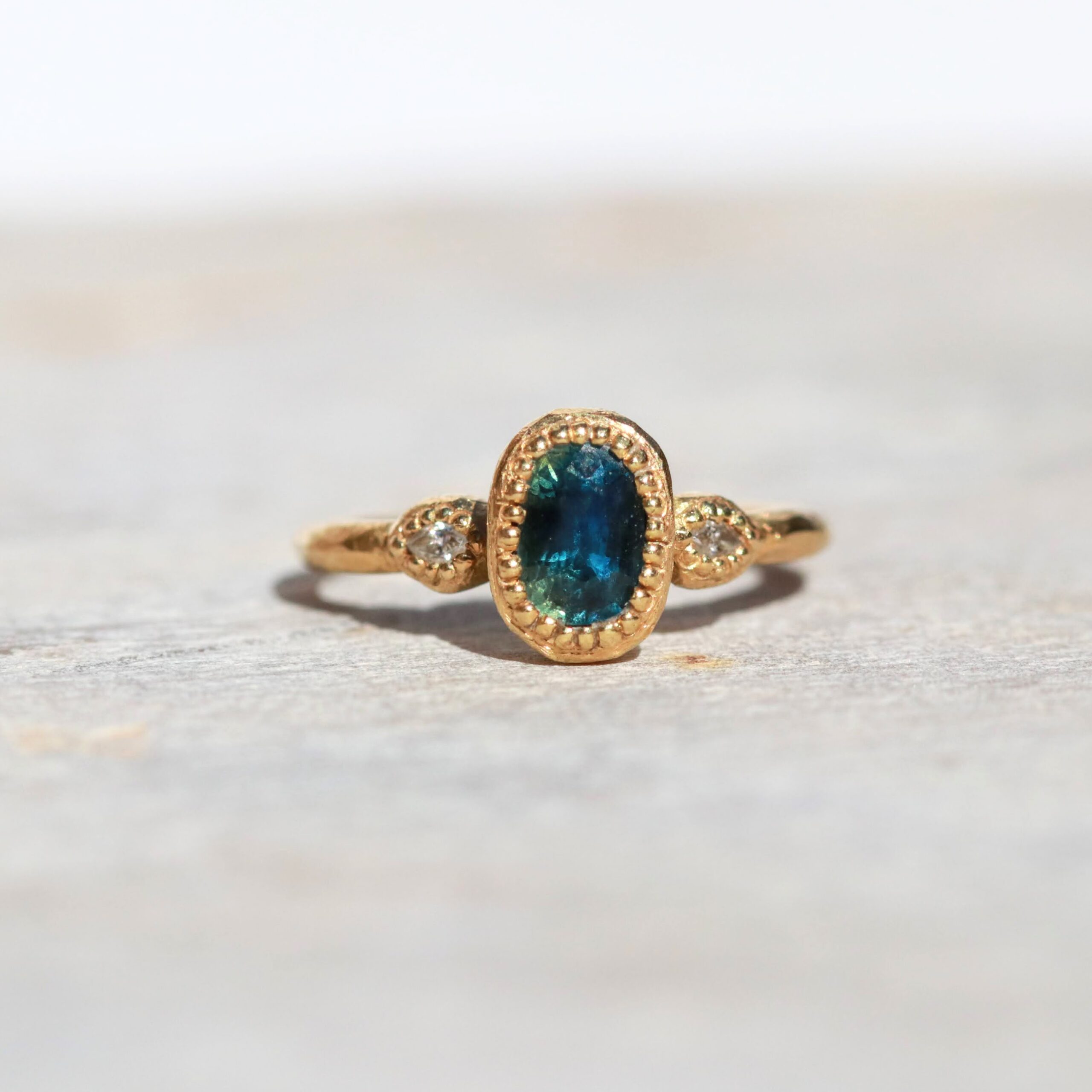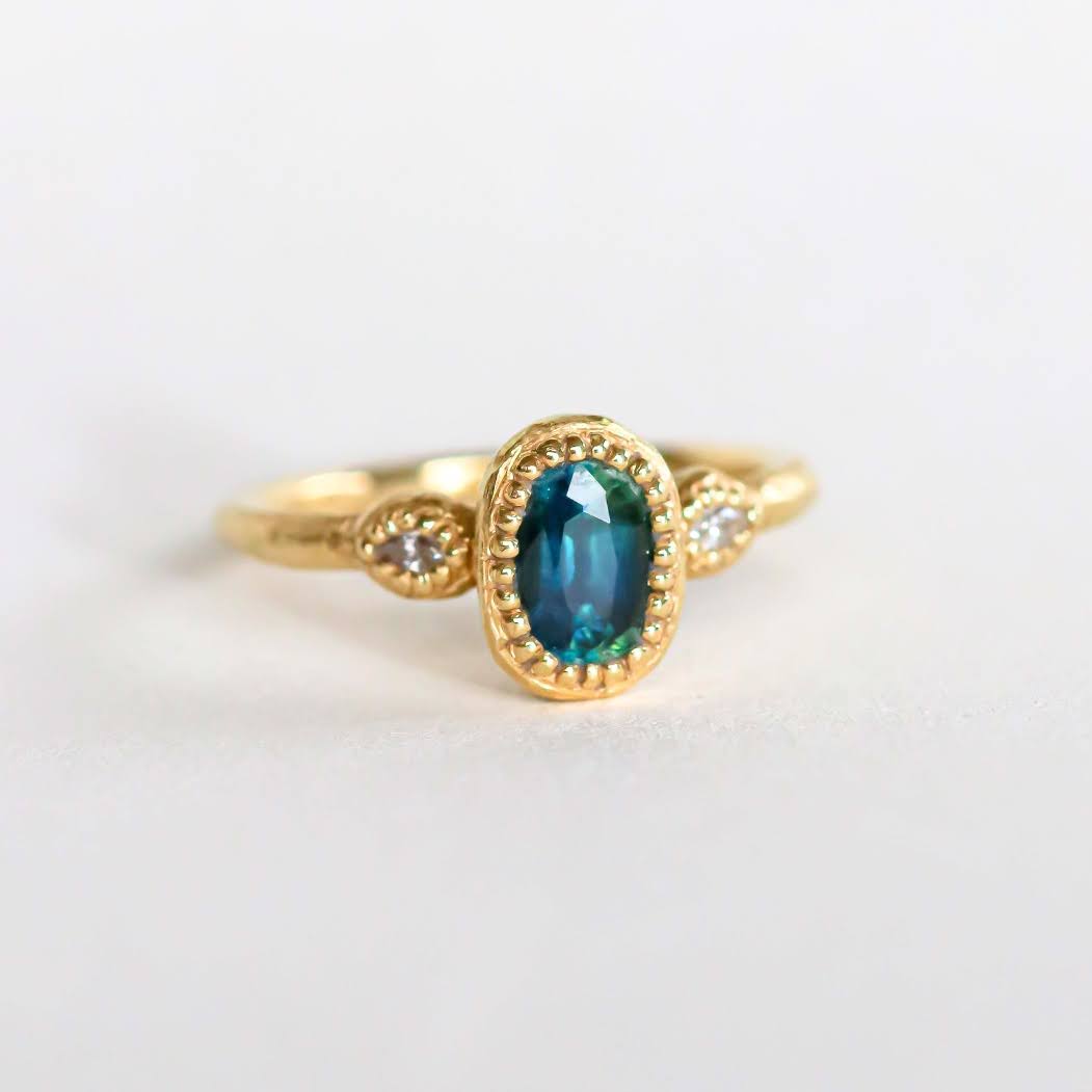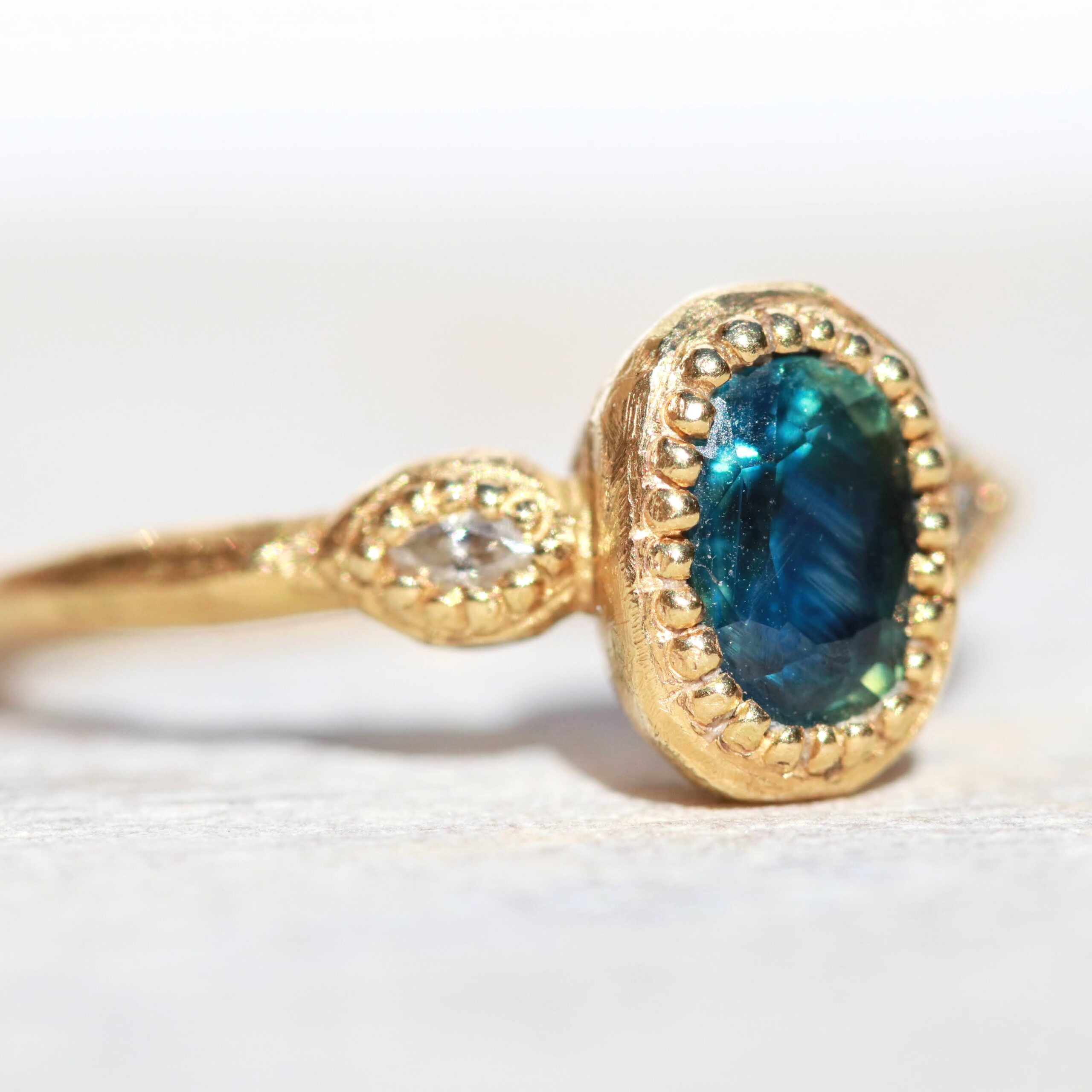 טבעת זהב I 18K ספיר מונטנה ויהלומי שמפניה
