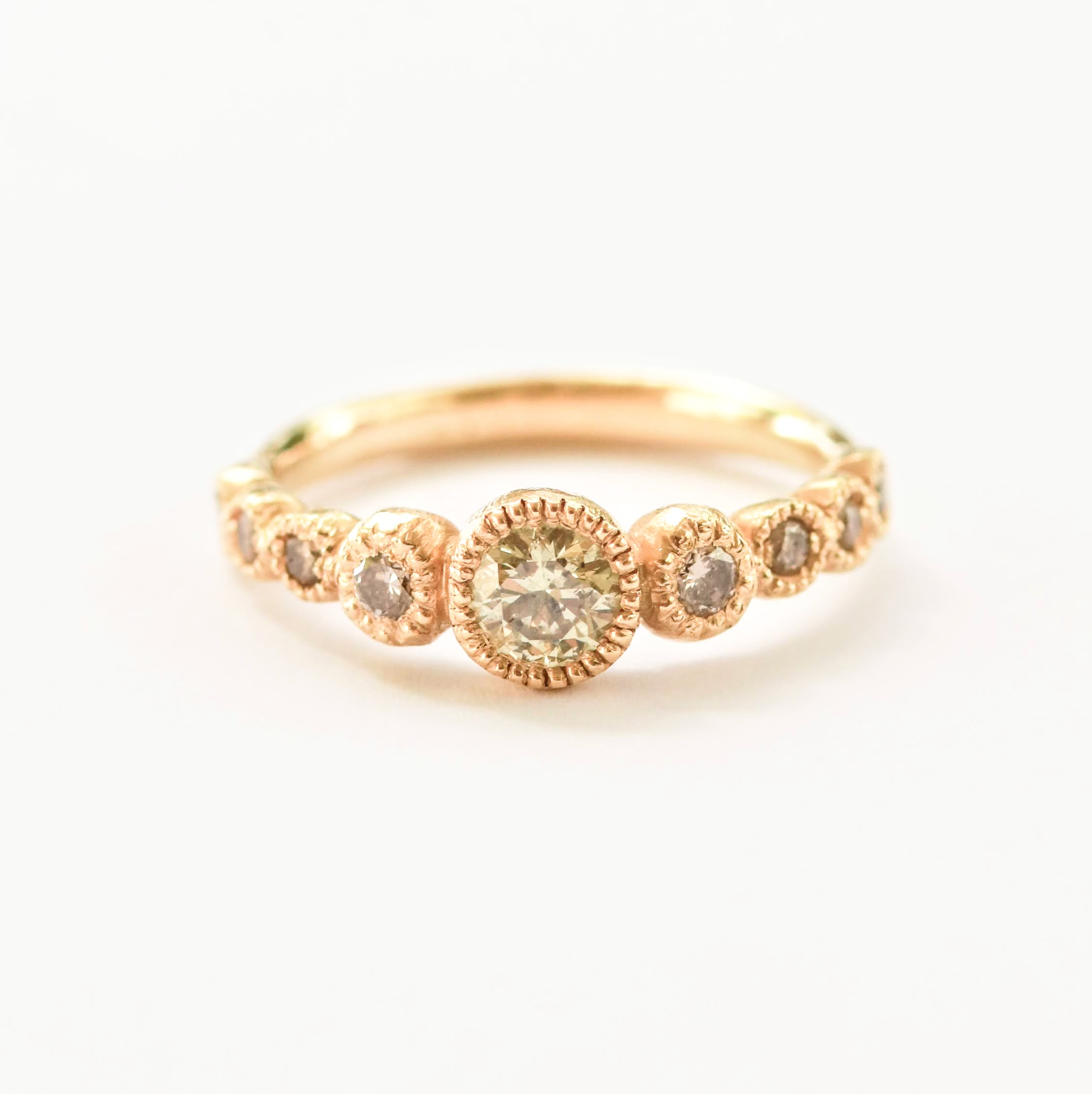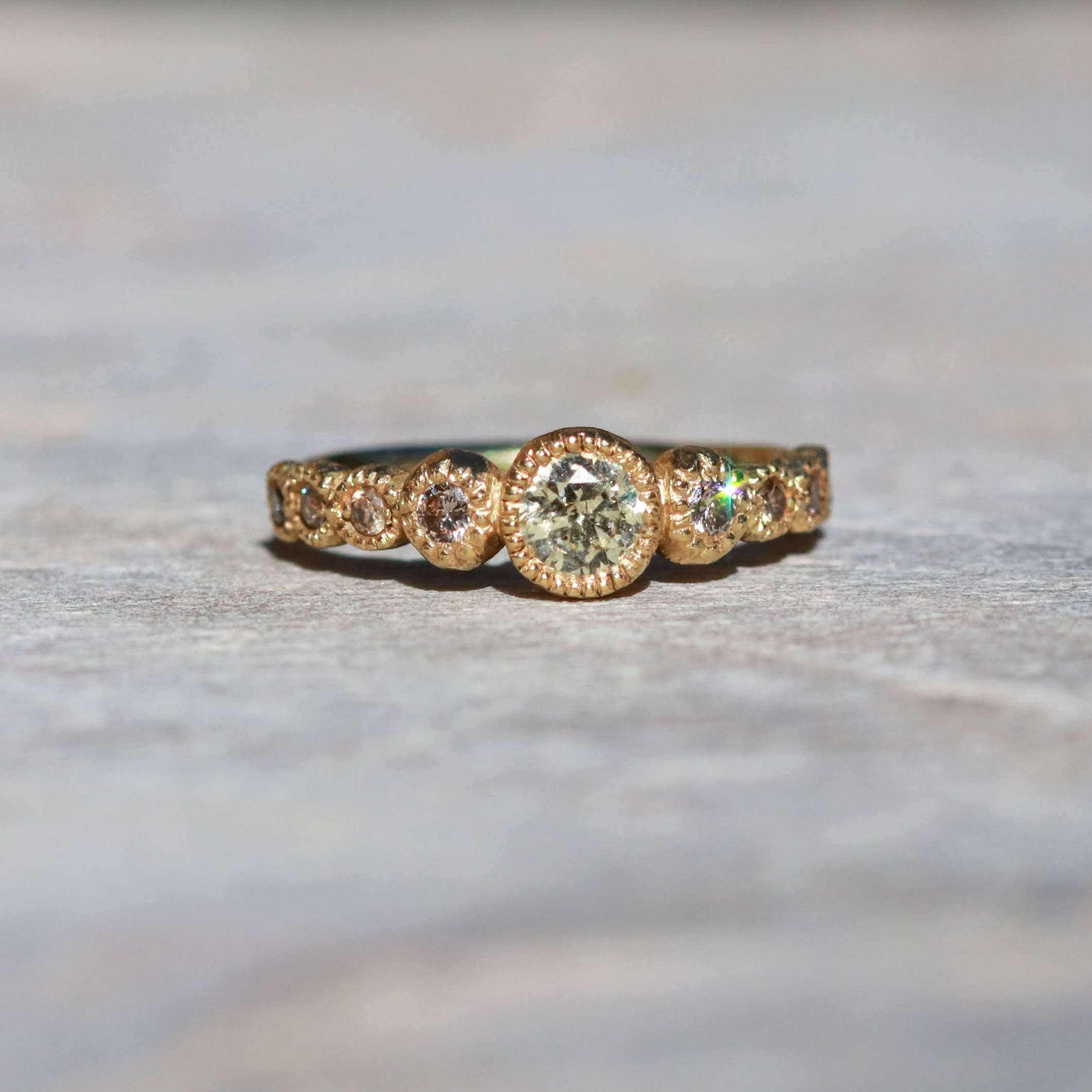טבעת זהב I 18K יהלום ירקרק טבעי ויהלומי שמפניה