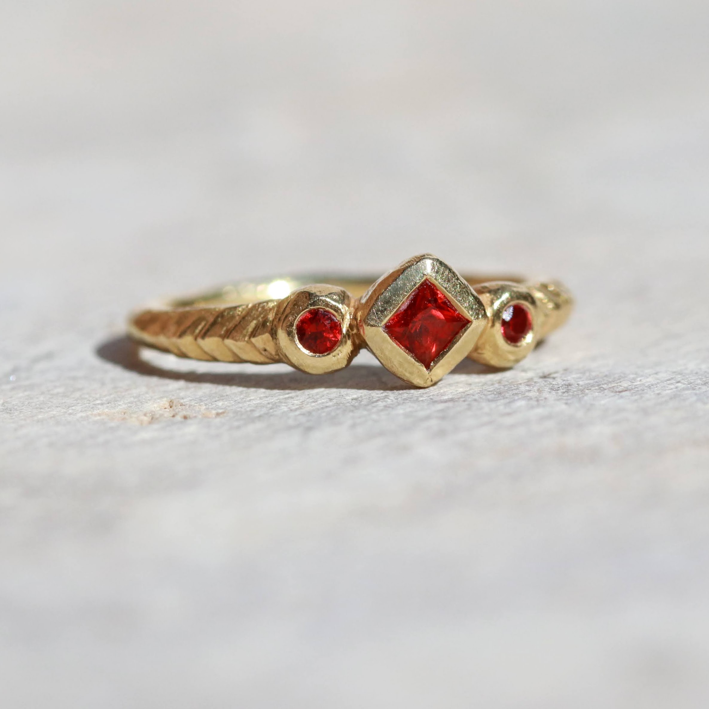 טבעת זהב 18K משובצת שלושה ספירים כתומים