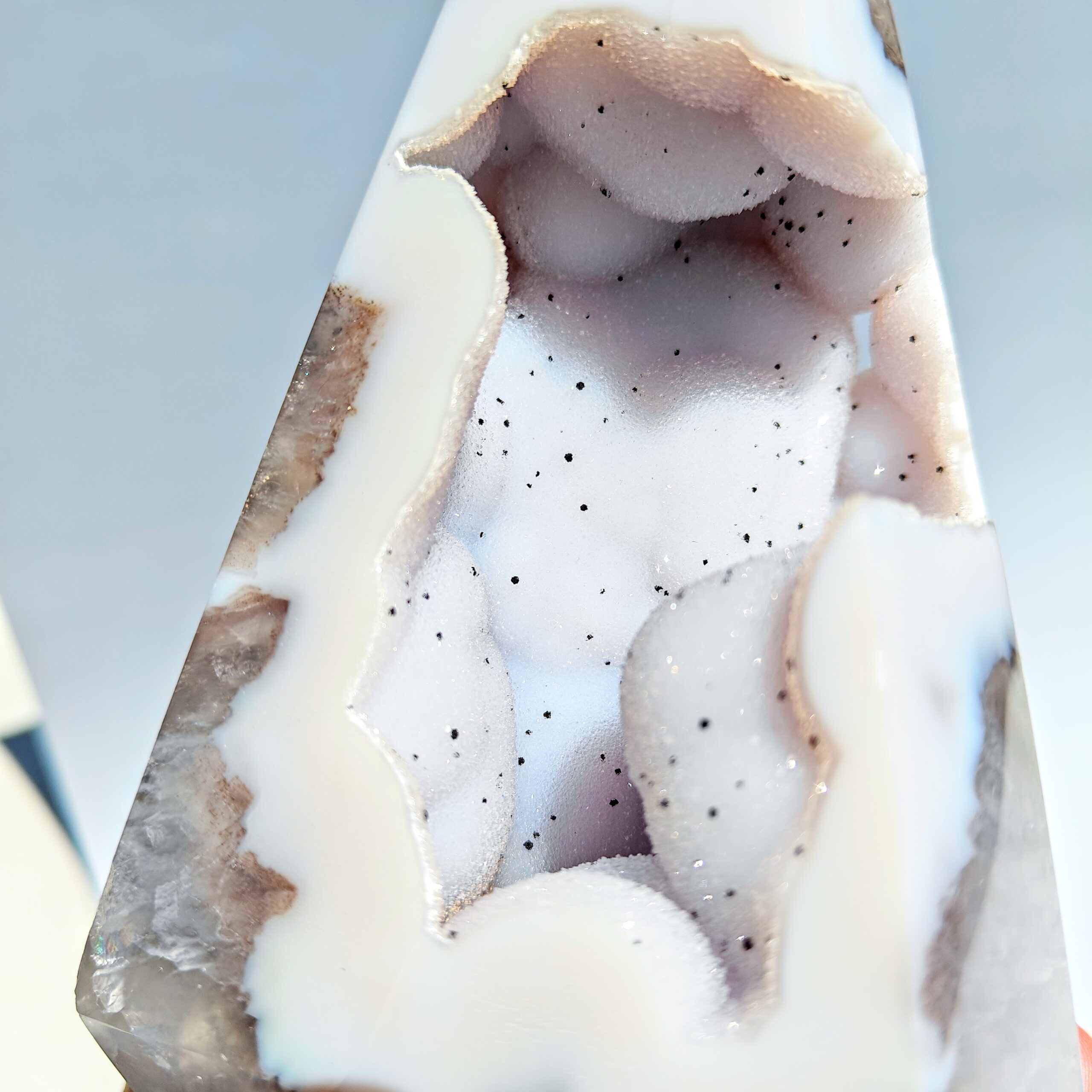 אגת ג'אוד מציגה מראה "רגיל" מבחוץ, אך כאשר היא נפתחת מתגלה בתוכה יופי אינסופי של גבישי קוורץ זעירים. האבן משקפת לנו את עצמנו: את החספוס והקשיים שהחיים מביאים מבחוץ, מול האור, היופי והעומק הפנימי שנחשפים כאשר אנו מסירים שכבות מעלינו.
