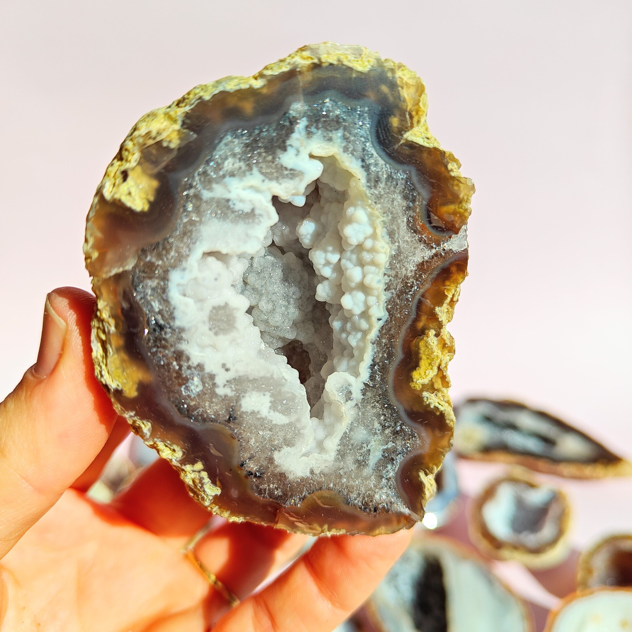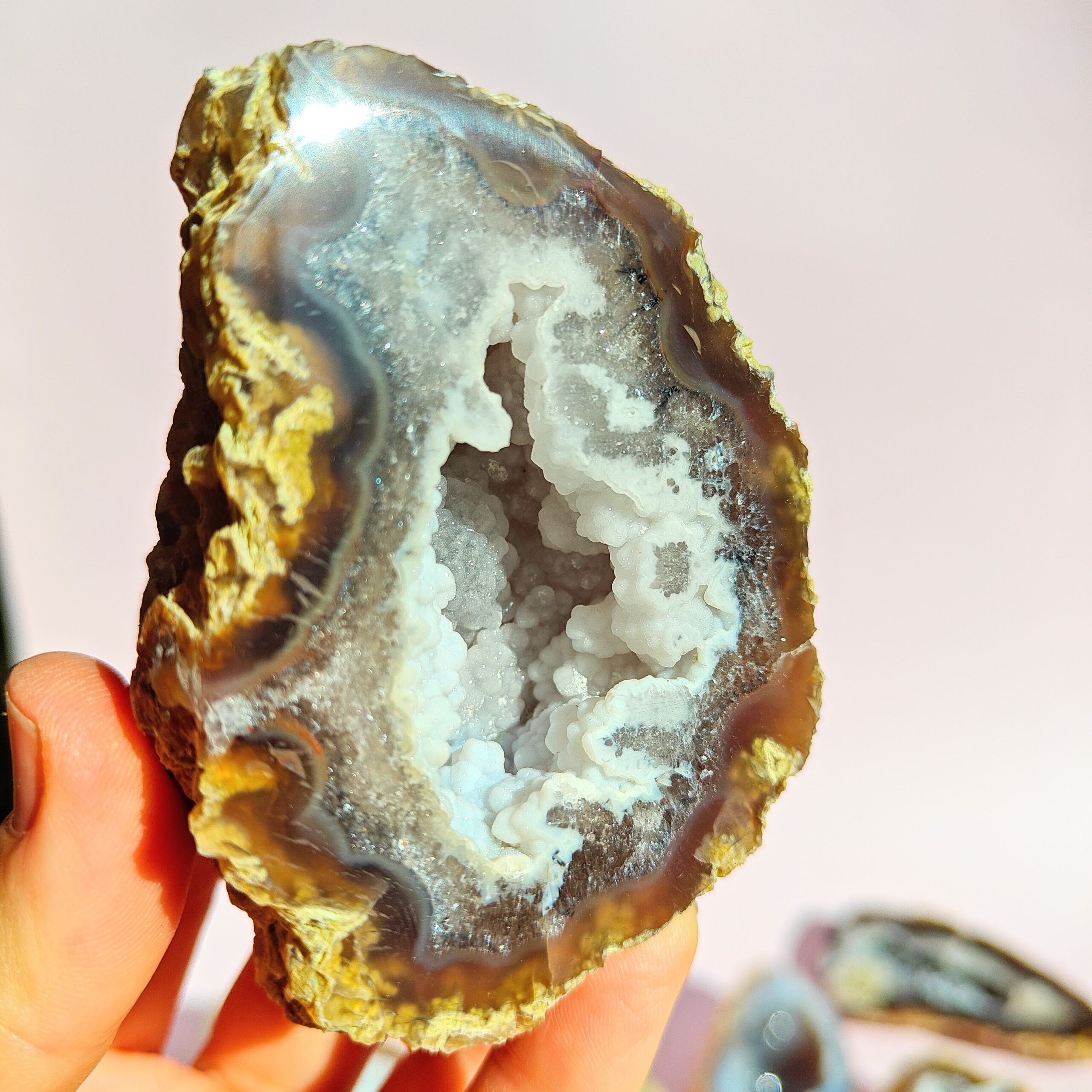אגת ג'אוד מציגה מראה "רגיל" מבחוץ, אך כאשר היא נפתחת מתגלה בתוכה יופי אינסופי של גבישי קוורץ זעירים. האבן משקפת לנו את עצמנו: את החספוס והקשיים שהחיים מביאים מבחוץ, מול האור, היופי והעומק הפנימי שנחשפים כאשר אנו מסירים שכבות מעלינו.