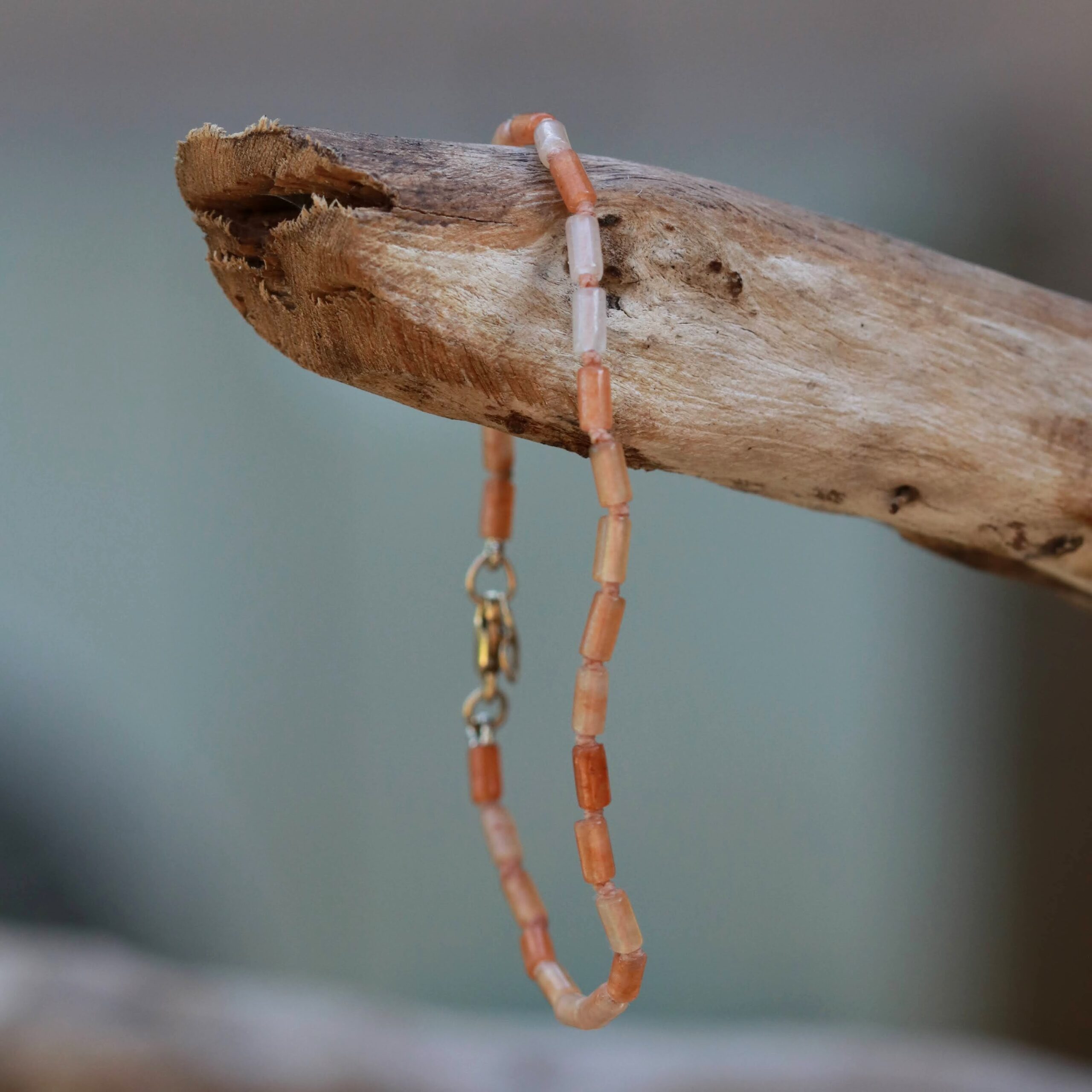 צמיד חרוזי אוונטורין כתום טבעי בליטוש מאורך בגוון חמים ורך.
