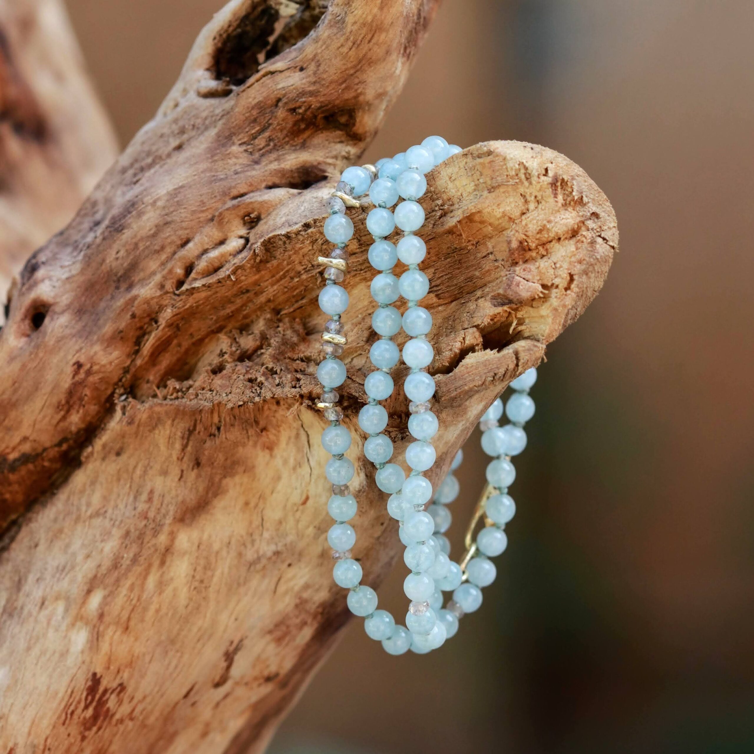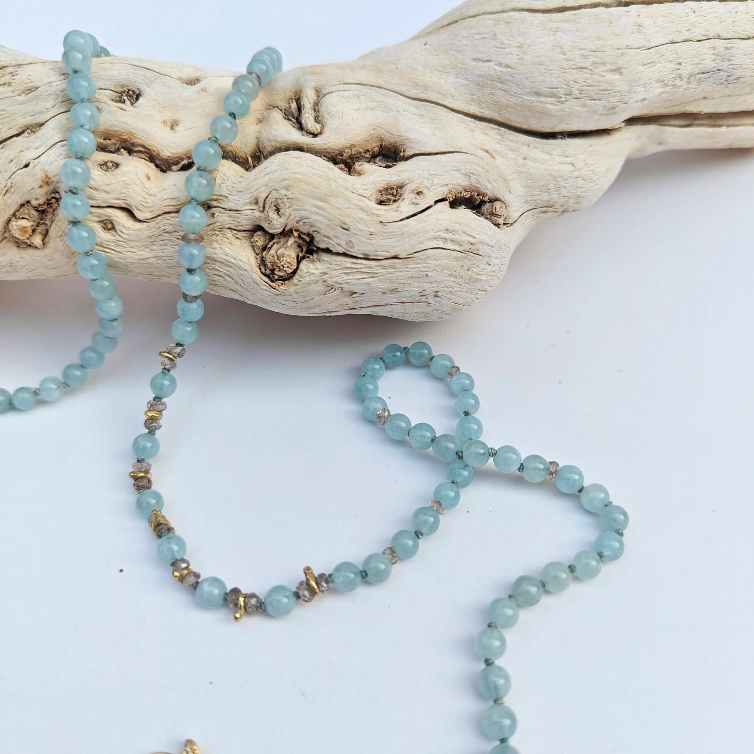 שרשרת חרוזים I אקוומרין וזהב