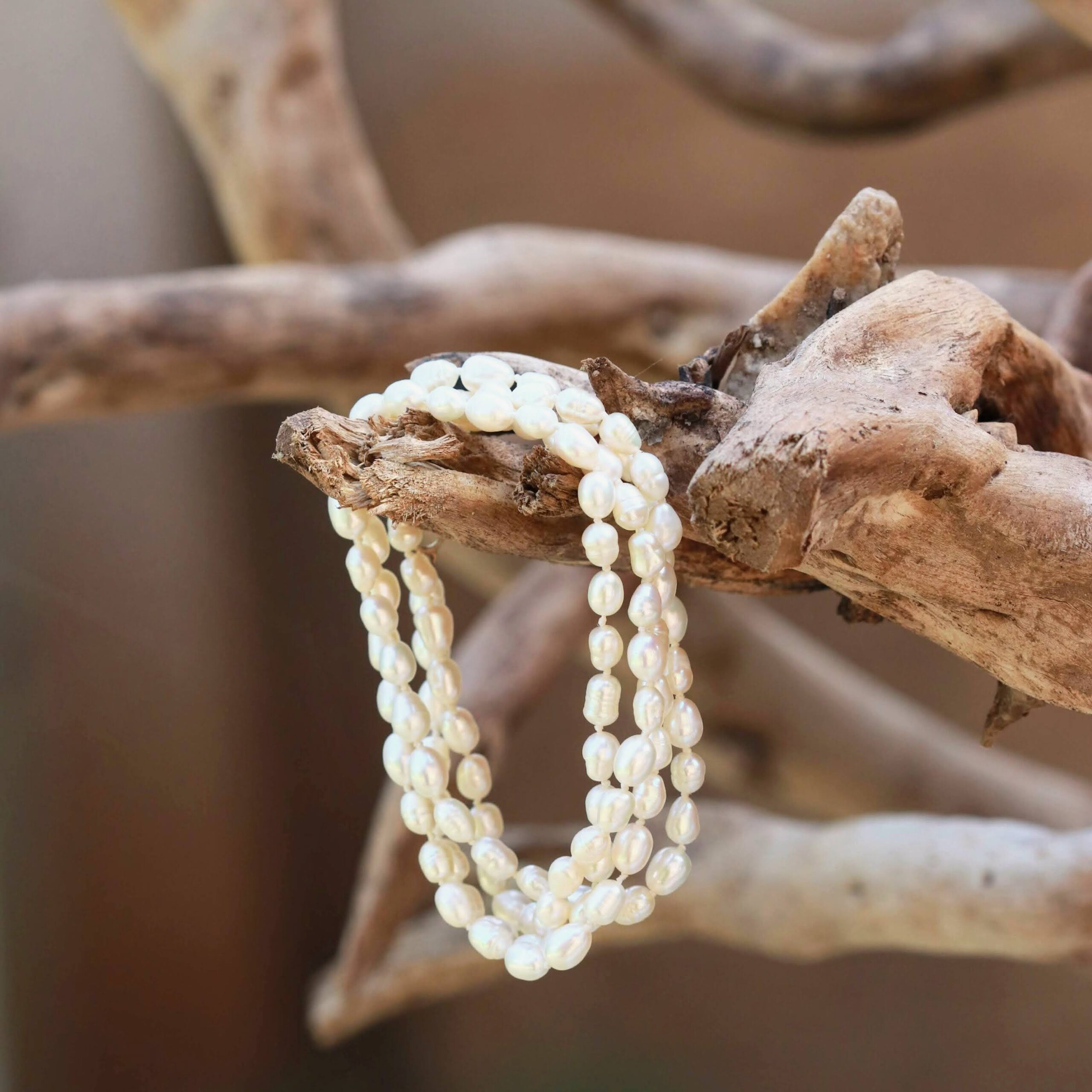 שרשרת חרוזים המשלבת פניני מים מתוקים בגוון טבעי ורך.