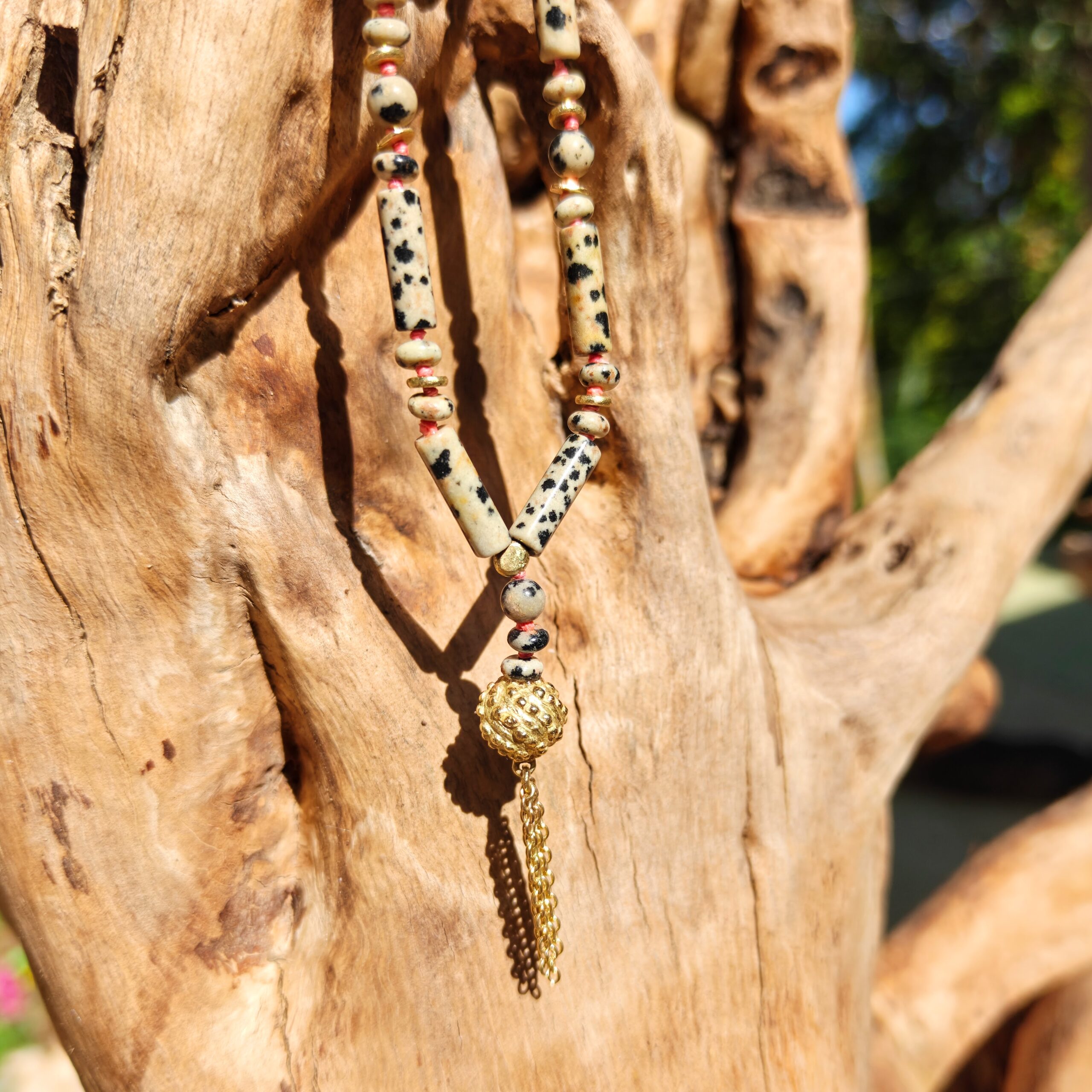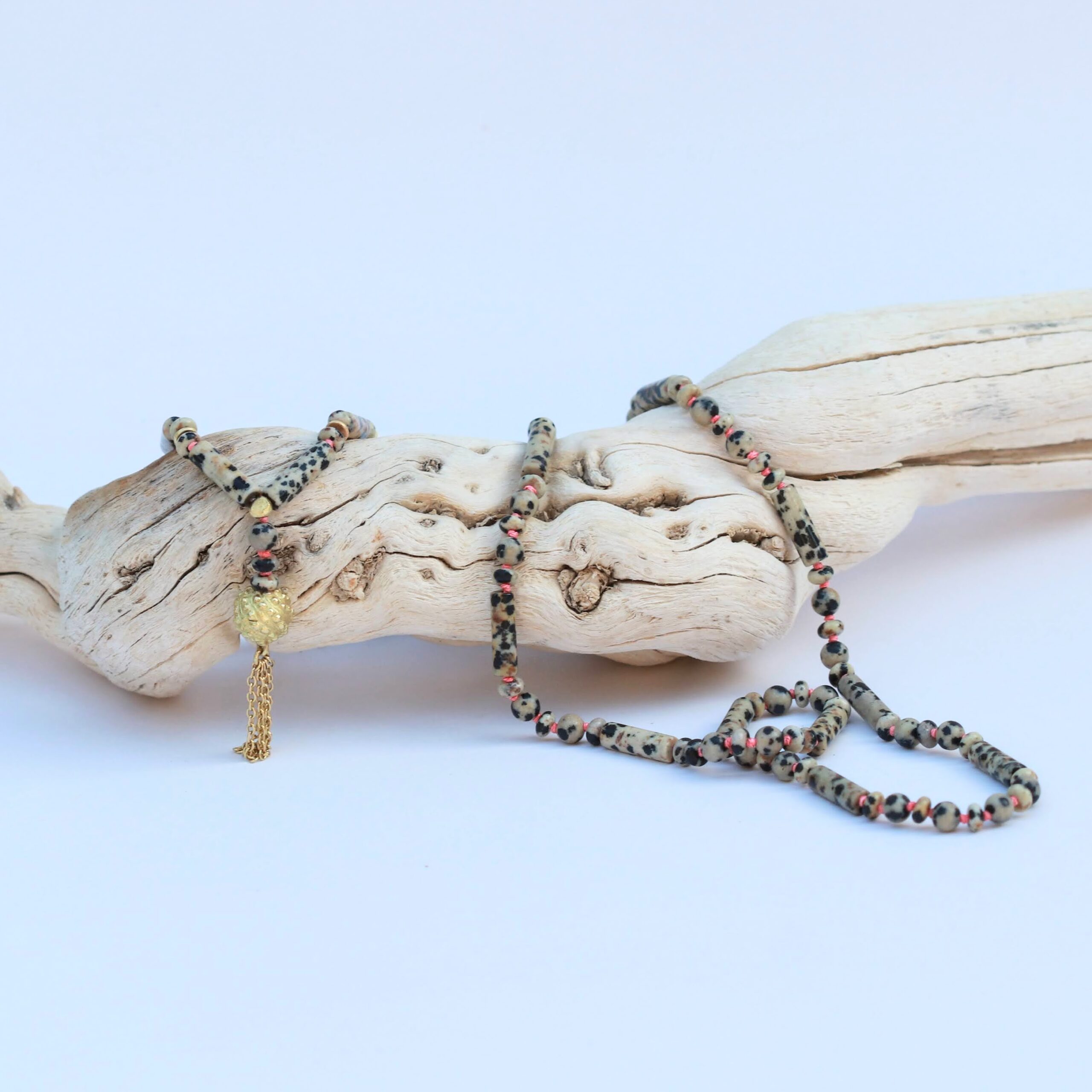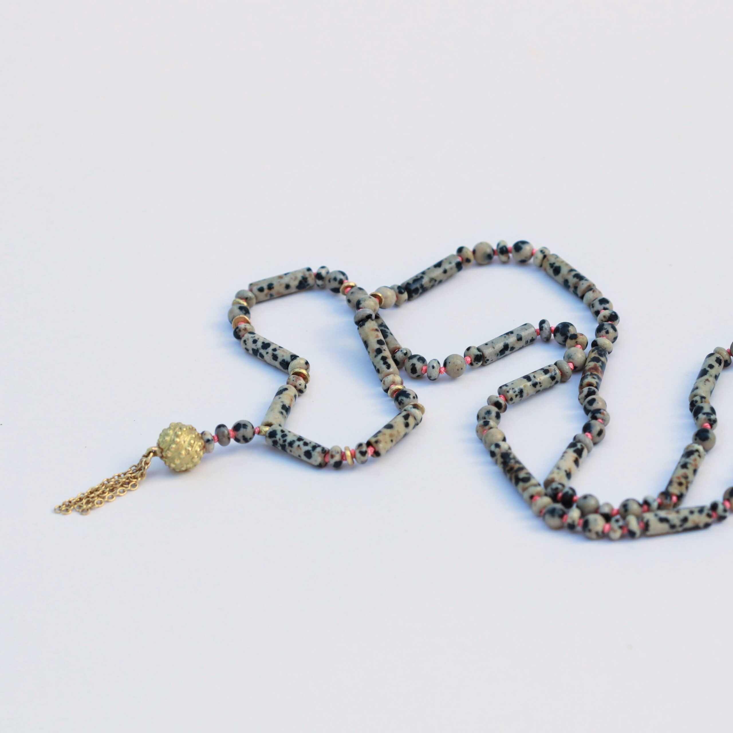 שרשרת חרוזי ג'ספר דלמטי בצורות ליטוש שונות בשילוב חרוזי זהב 18K