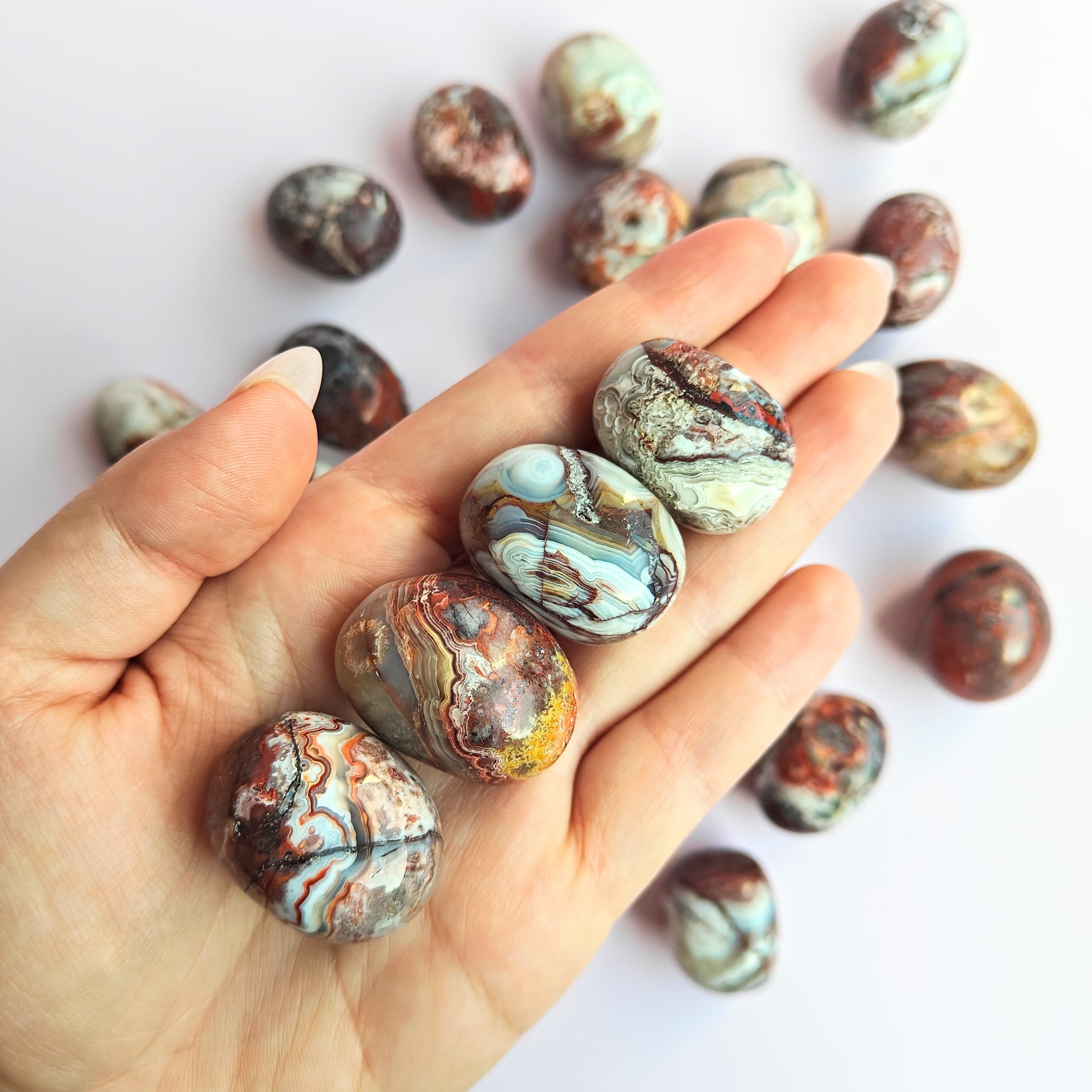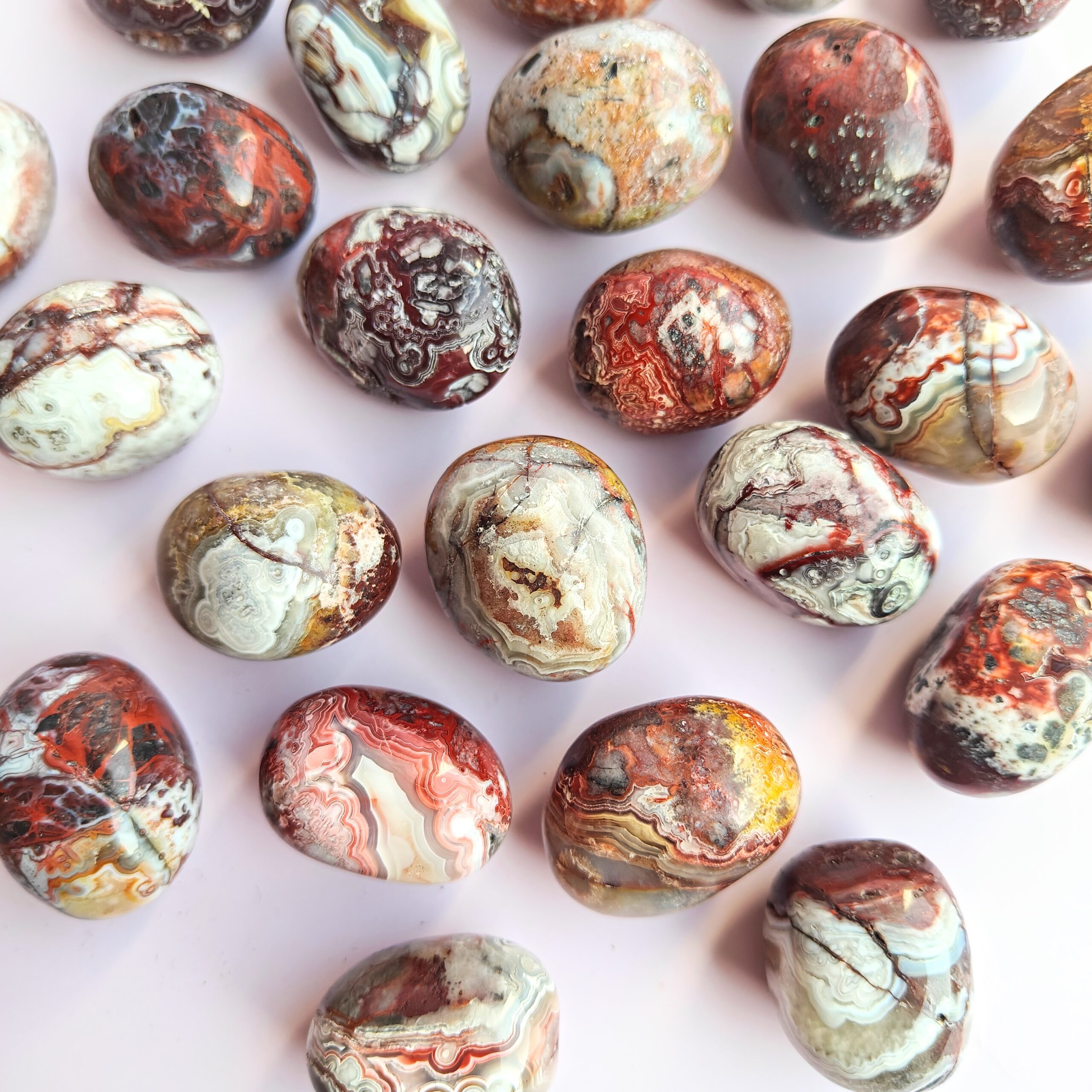 אגת קרייזי לייס, המכונה גם אגת תחרה משוגעת או אגת תחרה מקסיקנית, היא אבן מלאת שמחת חיים. שמה ביוונית, "אגטיק", פירושו מאושר, ואכן התדר שלה מזוהה עם קלילות, שמחה ותחושת חיות מתחדשת. היא פועלת במיוחד על הצ'אקרות התחתונות ומחזקת יציבות, הגנה וביטחון.