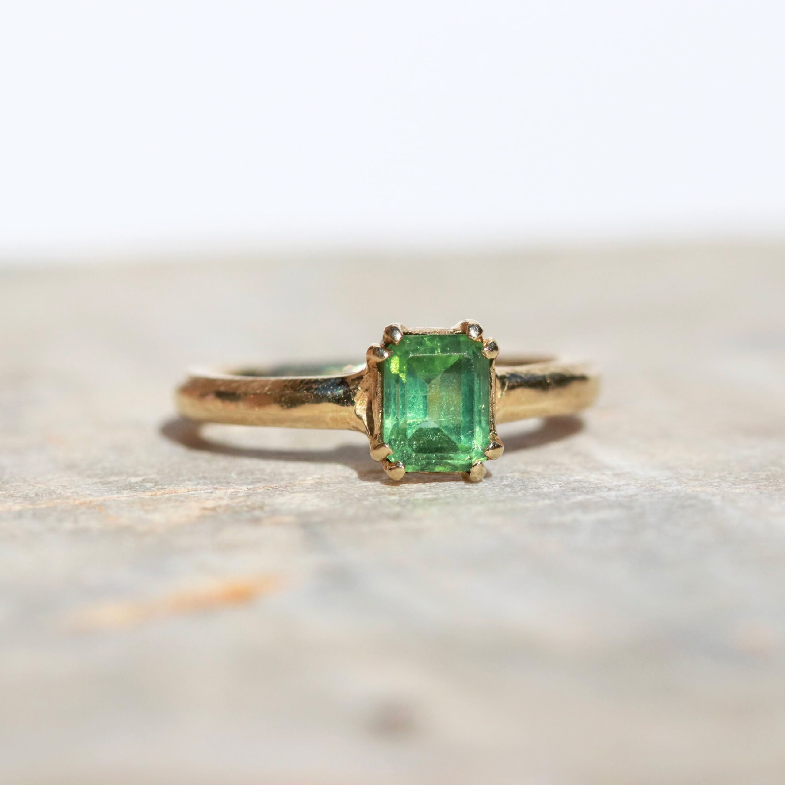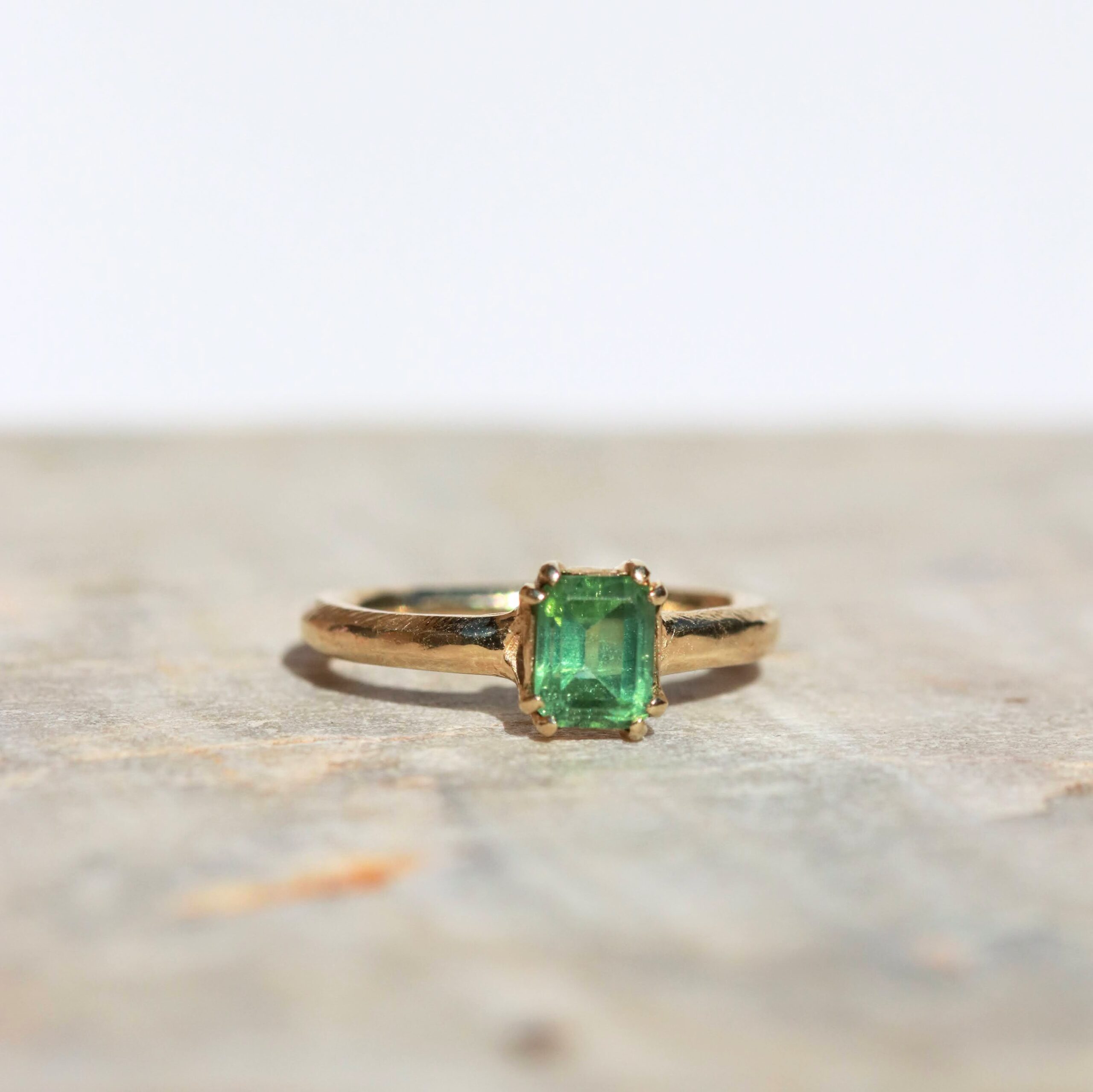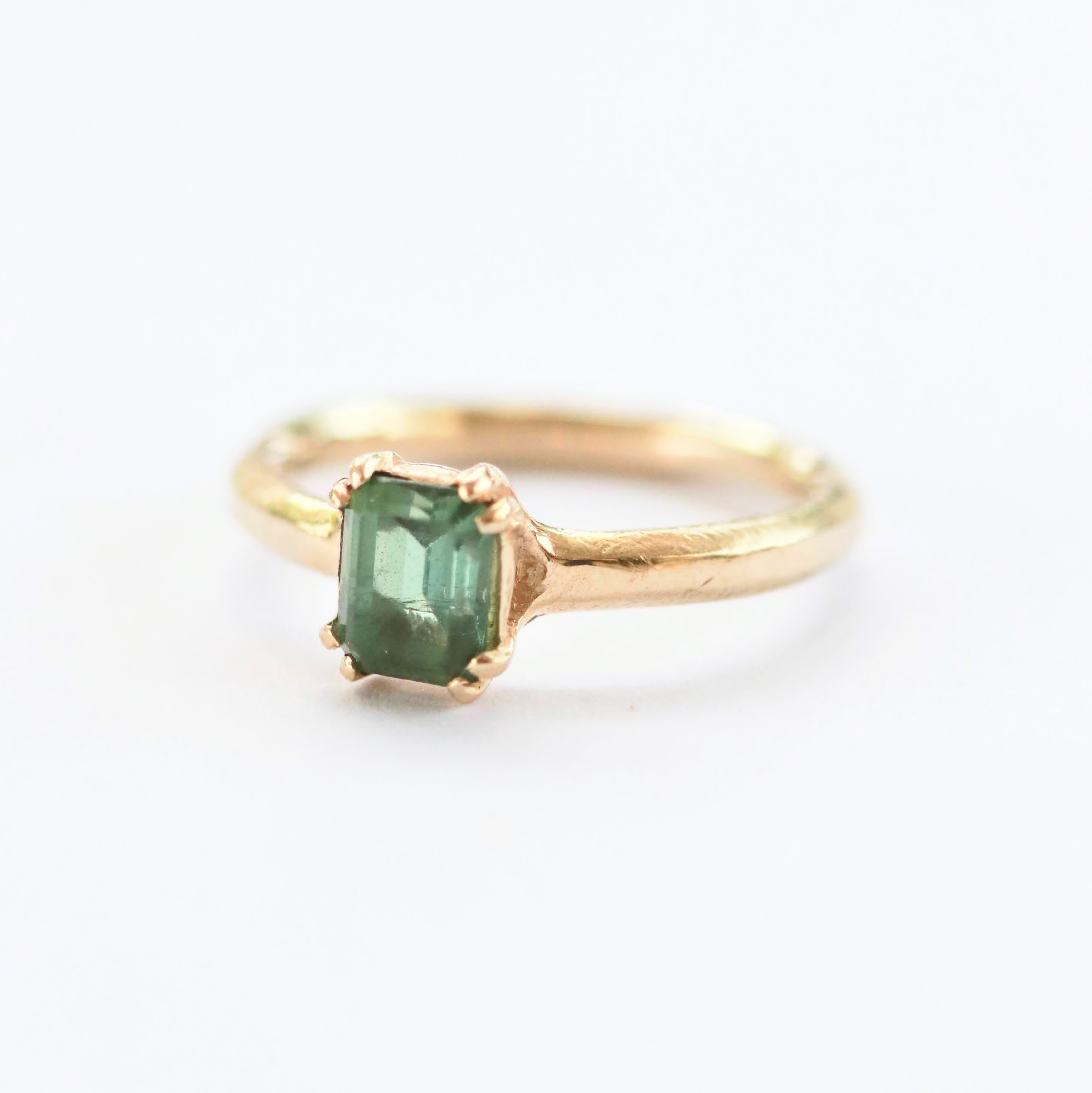 טבעת זהב 14K במשקל 2.85 גרם משובצת אבן טורמלין טבעית בחיתוך מלבני (emerald cut) במשקל 0.91ct.