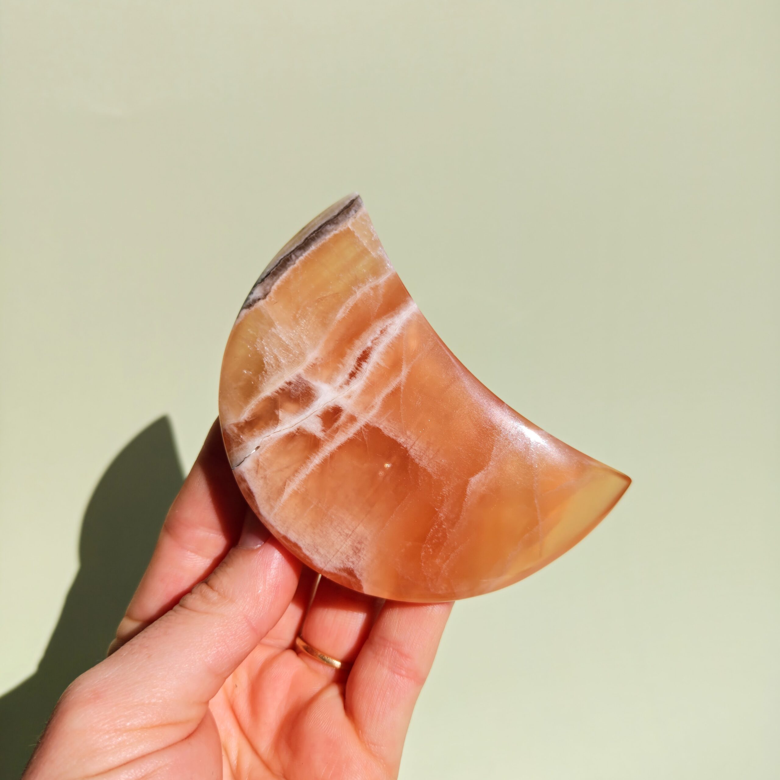 קלציט דבש נושאת תדר חמים ומייצב, שמחזיר אותנו למרכז גם בתוך תנועה ושינוי. היא תומכת ביכולת להישאר מחוברים לעצמנו בתוך מעברים, ולהסתגל למה שנפתח בלי לאבד אחיזה פנימית.