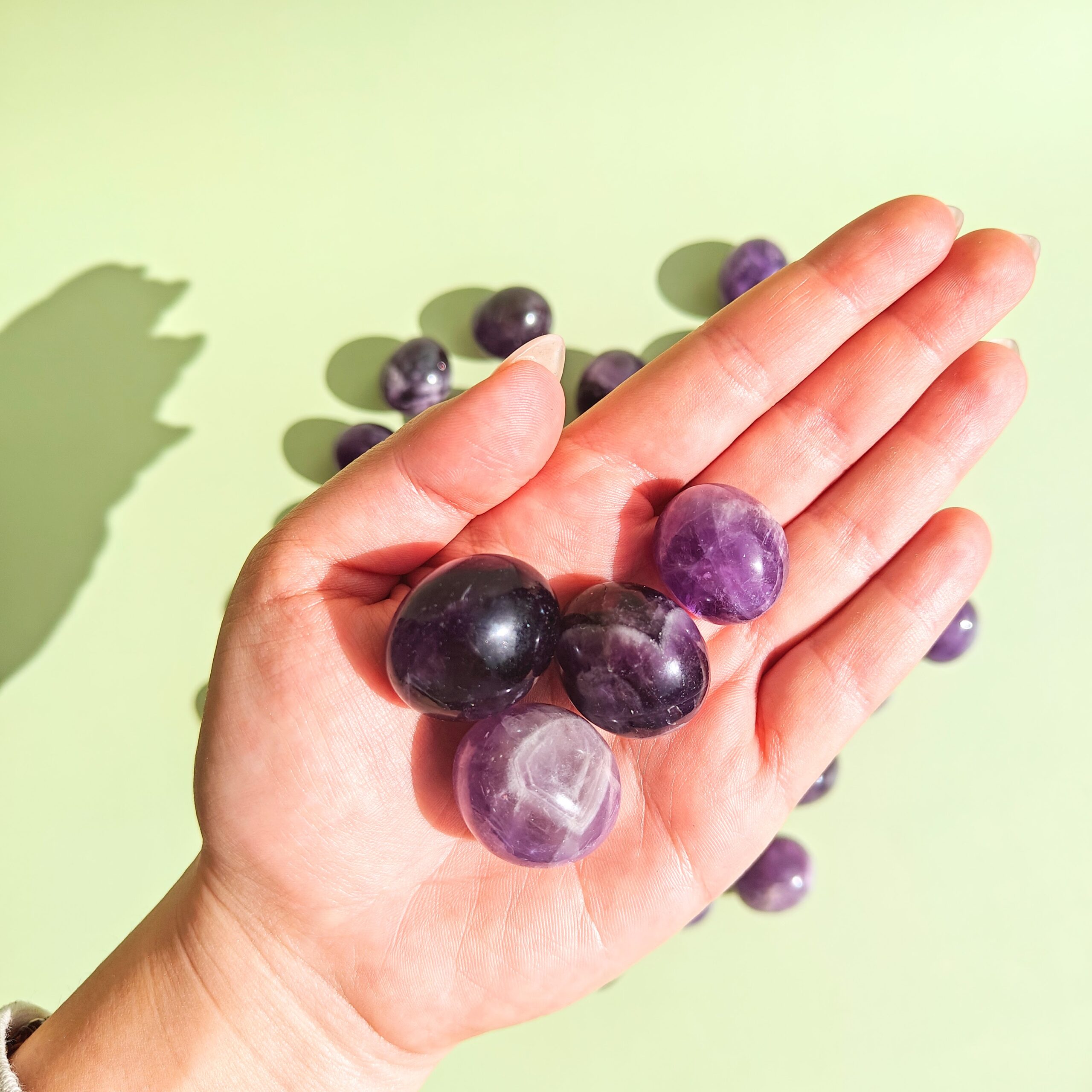 אמטיסט נושאת תדר שקט וצלול, כזה שמאפשר למחשבות להירגע ולתודעה להתרחב בעדינות. יש בה איכות מרככת שמזמינה לעצור, לנשום, ולתת למיינד לשחרר אחיזה.