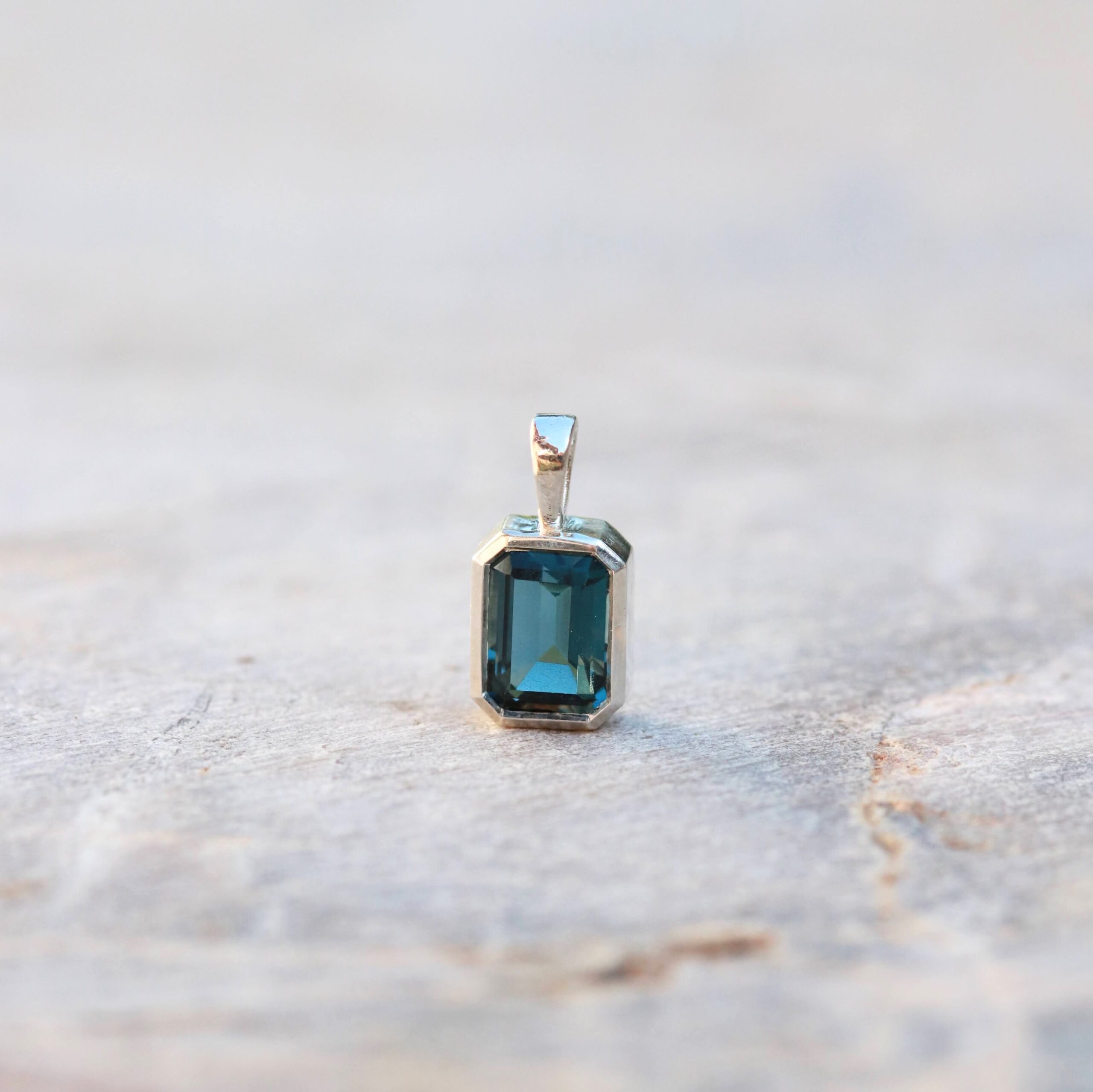 שרשרת כסף עדינה המשובצת אבן טופז לונדון טבעית בגוון כחול עמוק ואלגנטי.