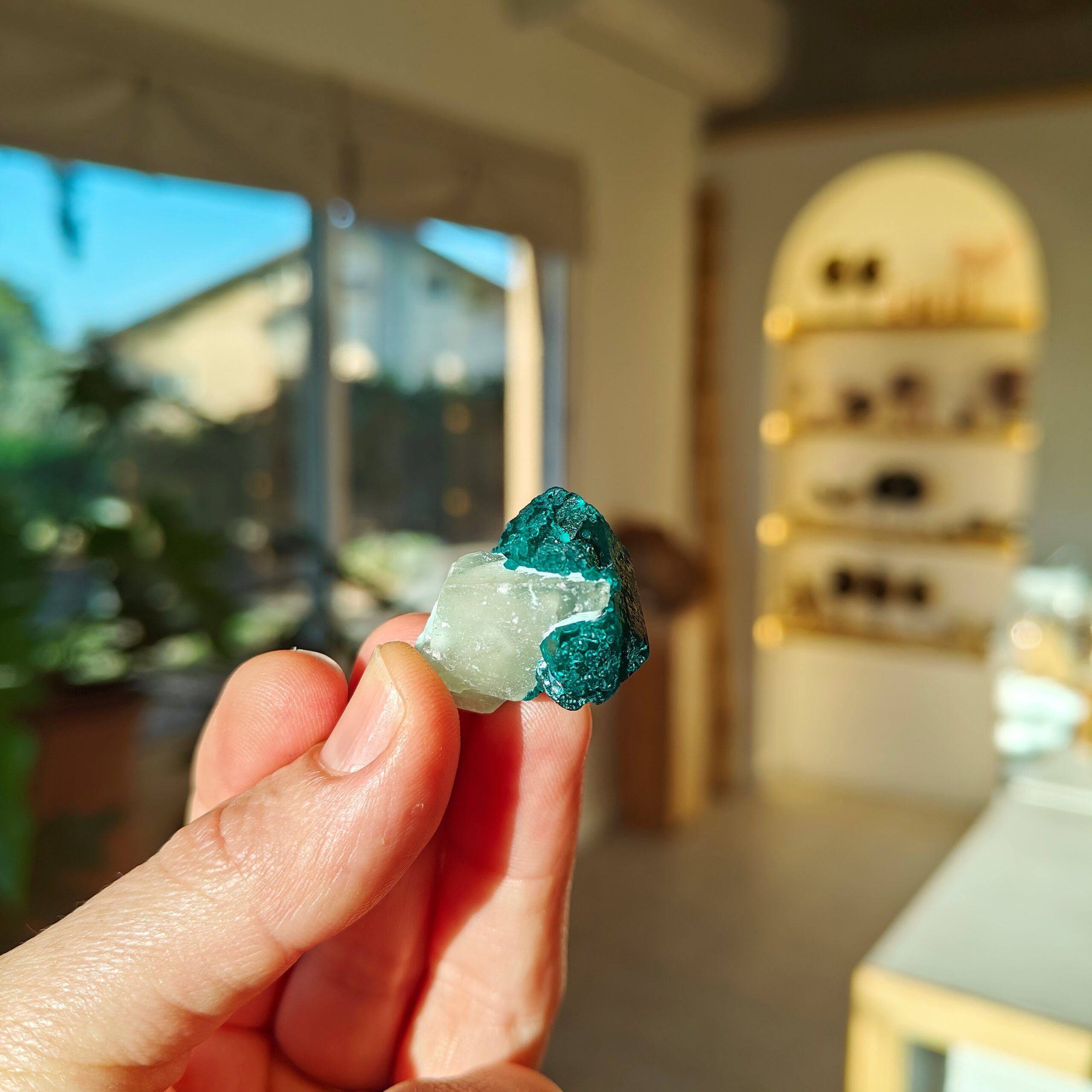 דיופטאז פועלת כמו גשר בין העבר להווה, מאפשרת לנו לשחרר טראומות ופחדים, ולפתוח את הלב לאהבה חדשה ולאיזון פנימי. היא מזינה אותנו באנרגיה שמחברת לעומק הפנימי ולתדרים גבוהים של צמיחה והתחדשות. האבן מחזקת את הביטחון העצמי, מעוררת שלווה פנימית, ותומכת בראיית עולם חיובית גם בתקופות מאתגרות.